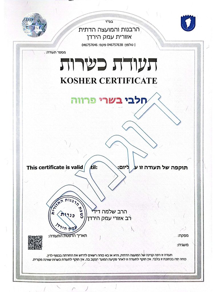 תעודת כשרות רגילה – בהתאם לדרישות הרבנות הראשית לישראל